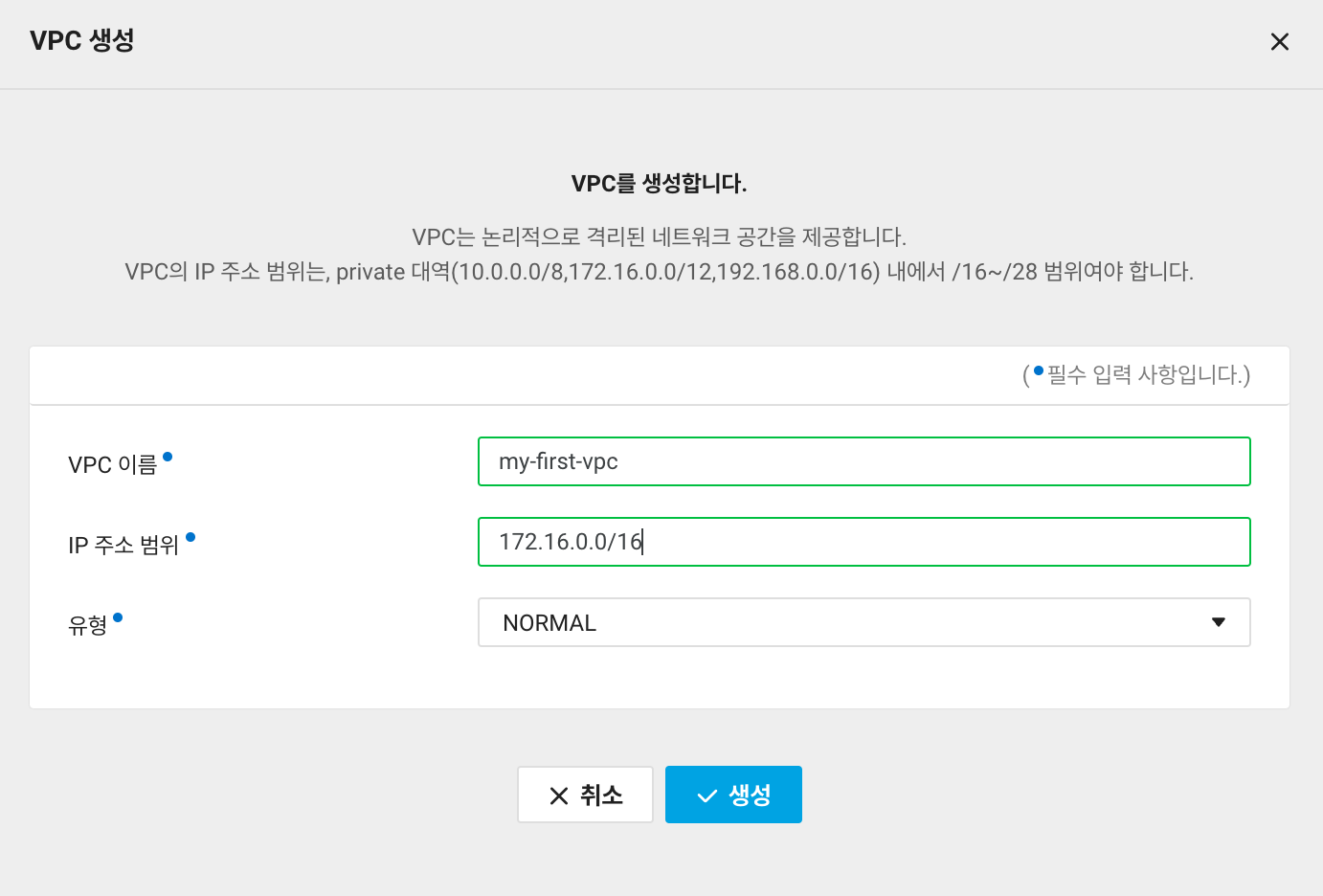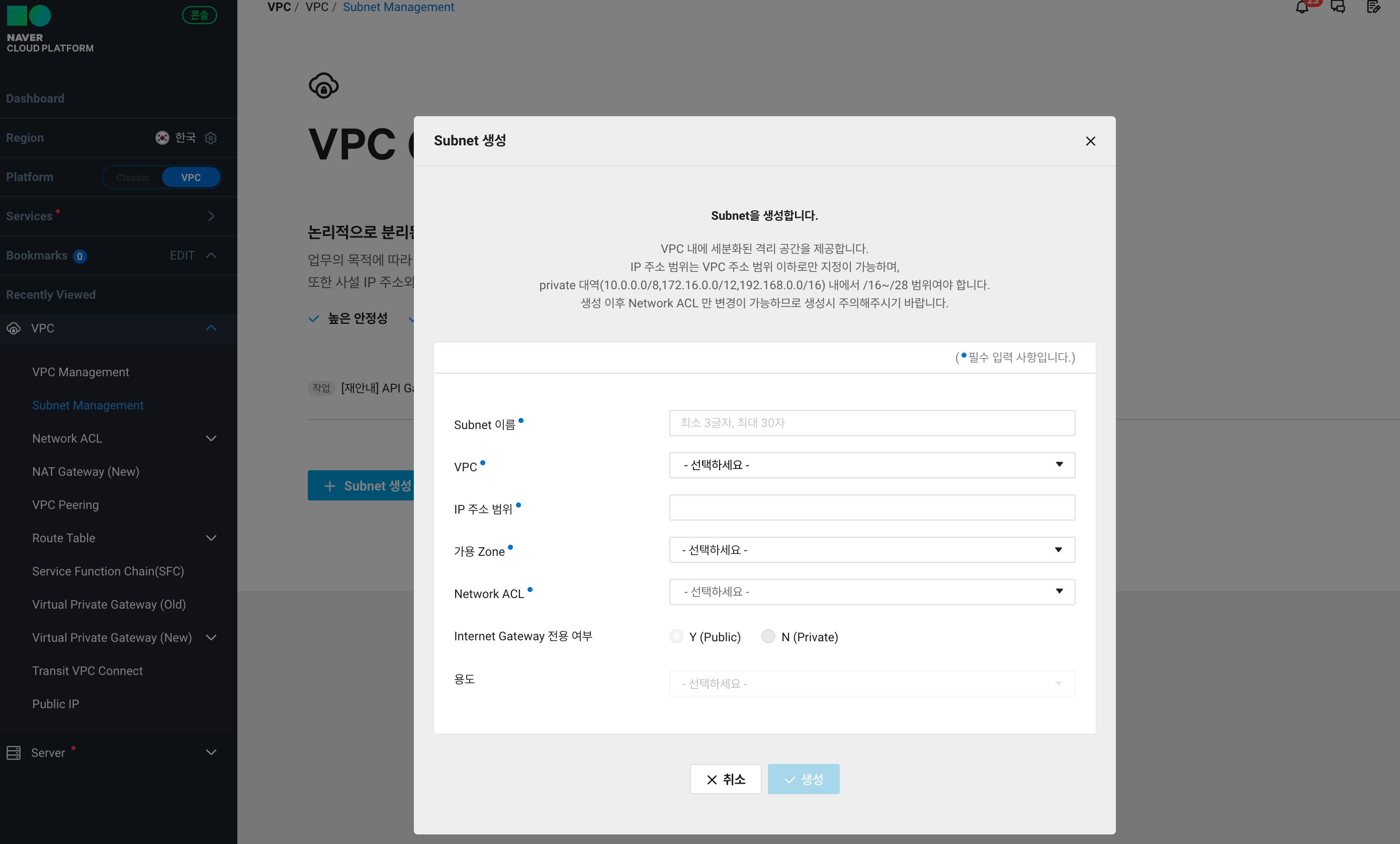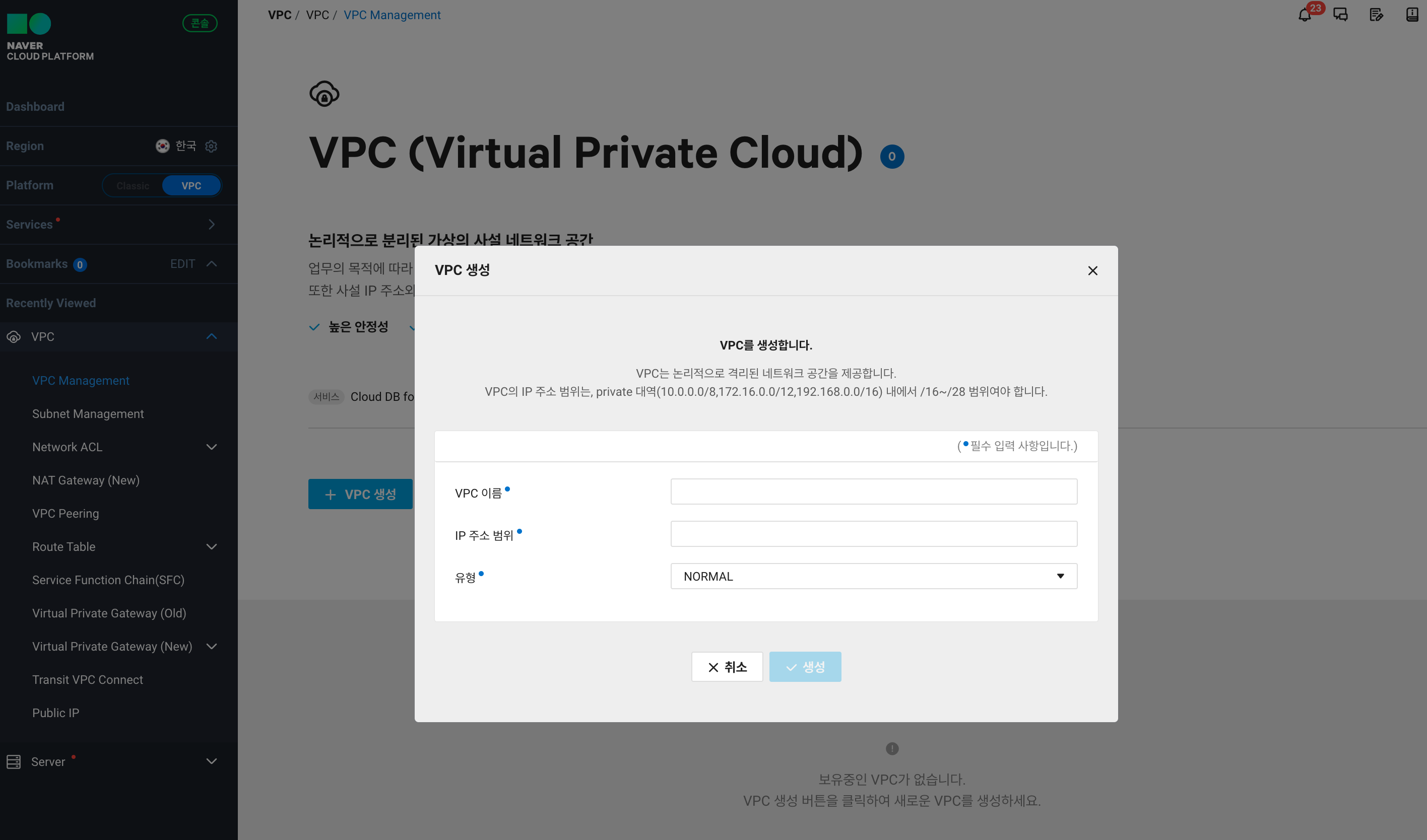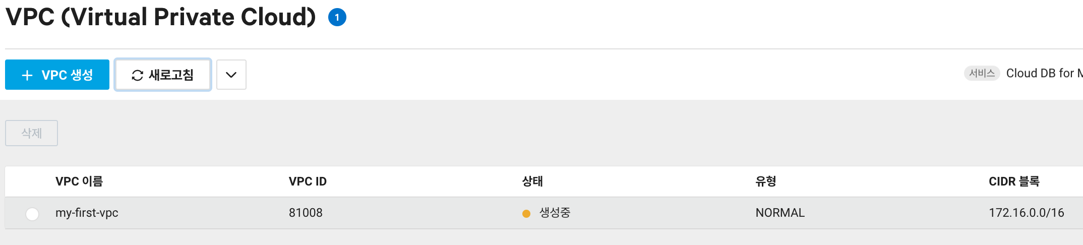 VPC란? Virtual Private Cloud의 약자로, 클라우드 컴퓨팅 환경에서 사용자가 정의하고 관리할 수 있는 격리된 네트워크 영역을 뜻한다. 자세한 설명은 네이버 클라우드 VPC 링크 참고