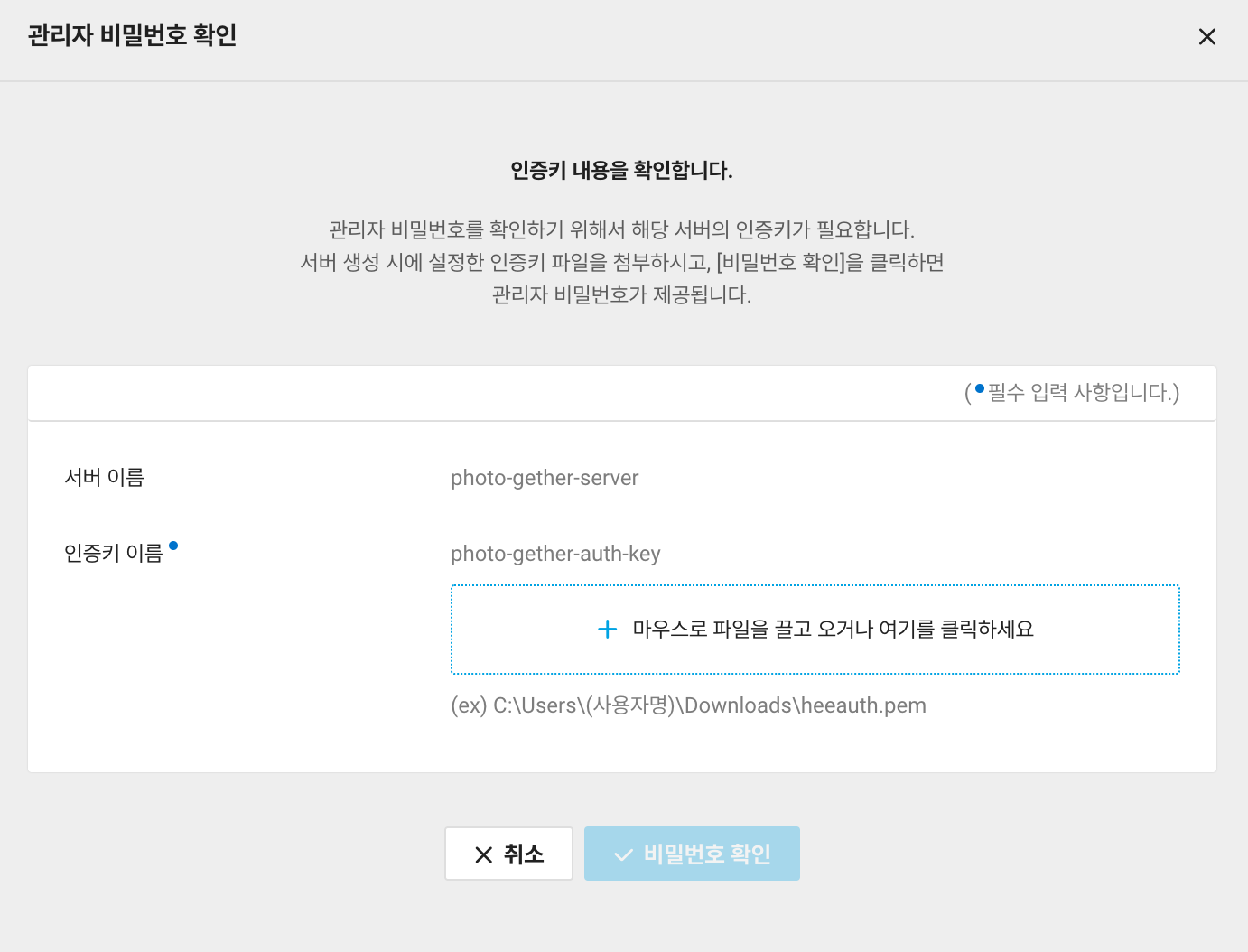 아까 발급받았던 인증서를 통해 초기 비밀번호를 확인할 수 있다.