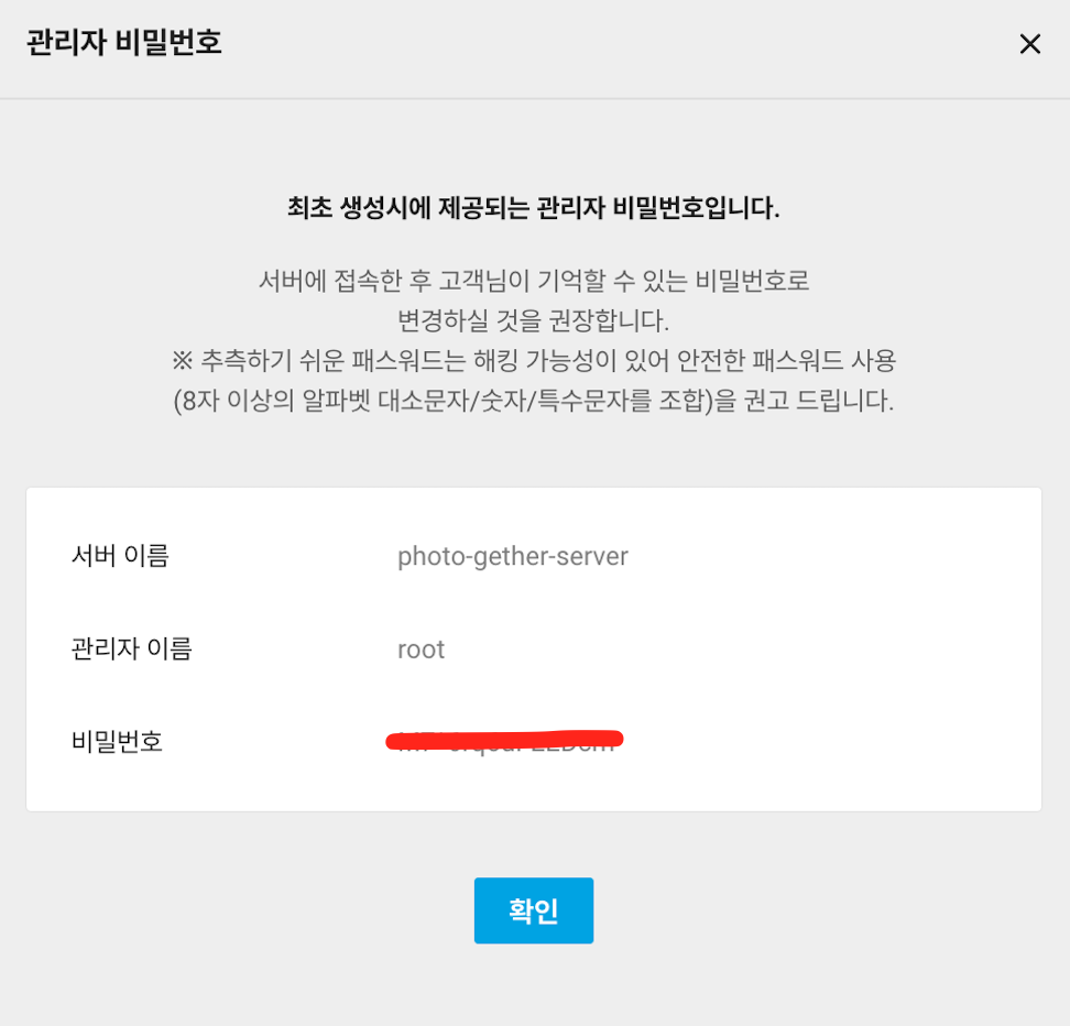 최종적으로 확인하는 과정을 거쳐 서버를 생성한다.