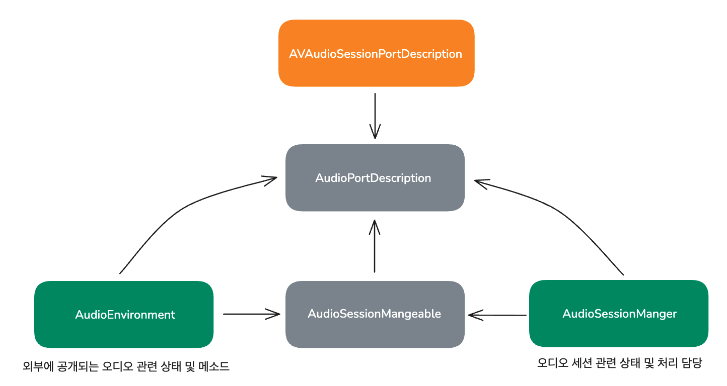 그리고 최종적으로 AudioSessionManager라는 하나의 객체 안에서 관리하도록 결정했습니다.