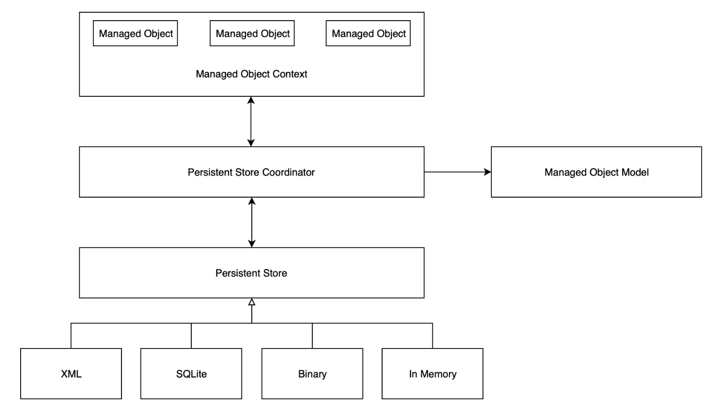 CoreData의 저장 구조는 아래와 같은 계층 구조를 가집니다.
