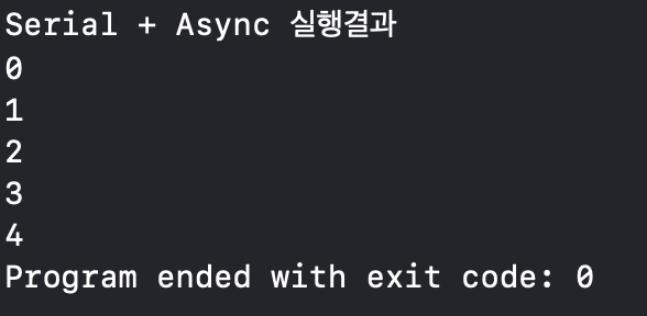serial이니까 한 스레드에 순차적으로 등록하고, 각 작업은 순서 상관없이 리턴됩니다.