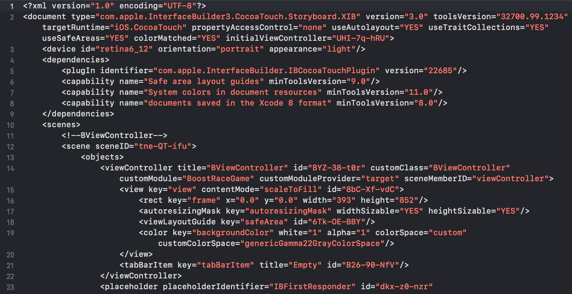 xml 형태로 볼수 있게 됩니다.. 애초에 스토리보드는 xml로 작성되어 있고, XCode 상에서 GUI로 보여줄 뿐입니다.