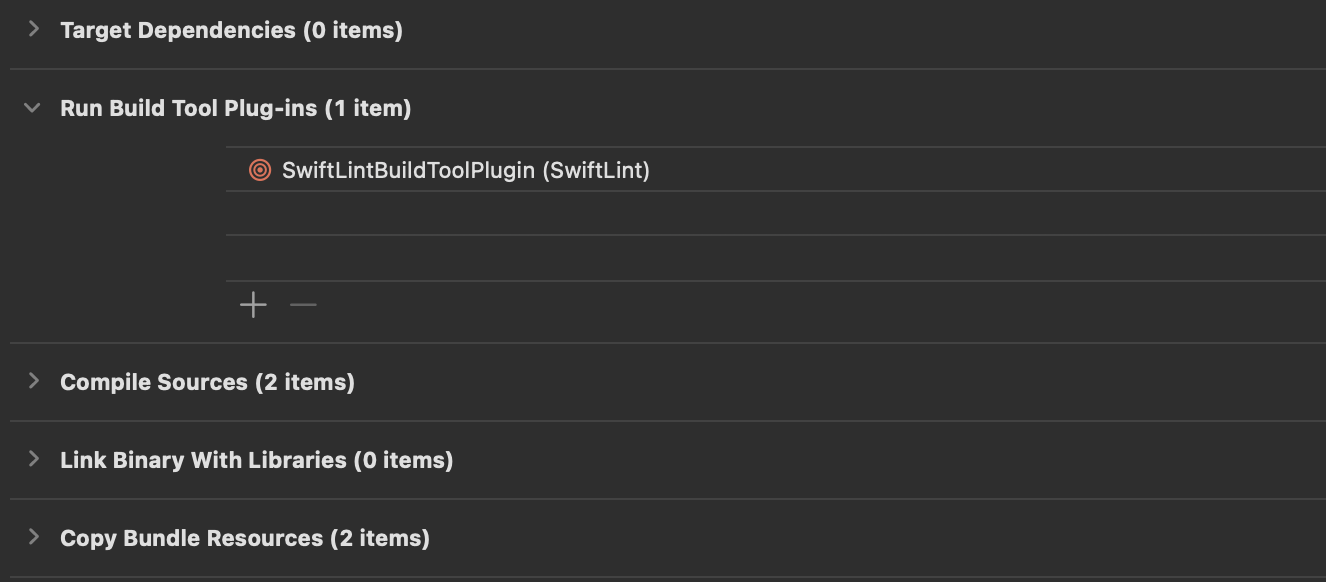 첫번째는 SwiftLintBuildToolPlugin 을 사용하는 방법입니다. 하지만 이 방식은 build phase에 script를 추가하지 않는 방법이라 커스텀 룰을 적용할 수 없어보여 추천하지 않습니다.