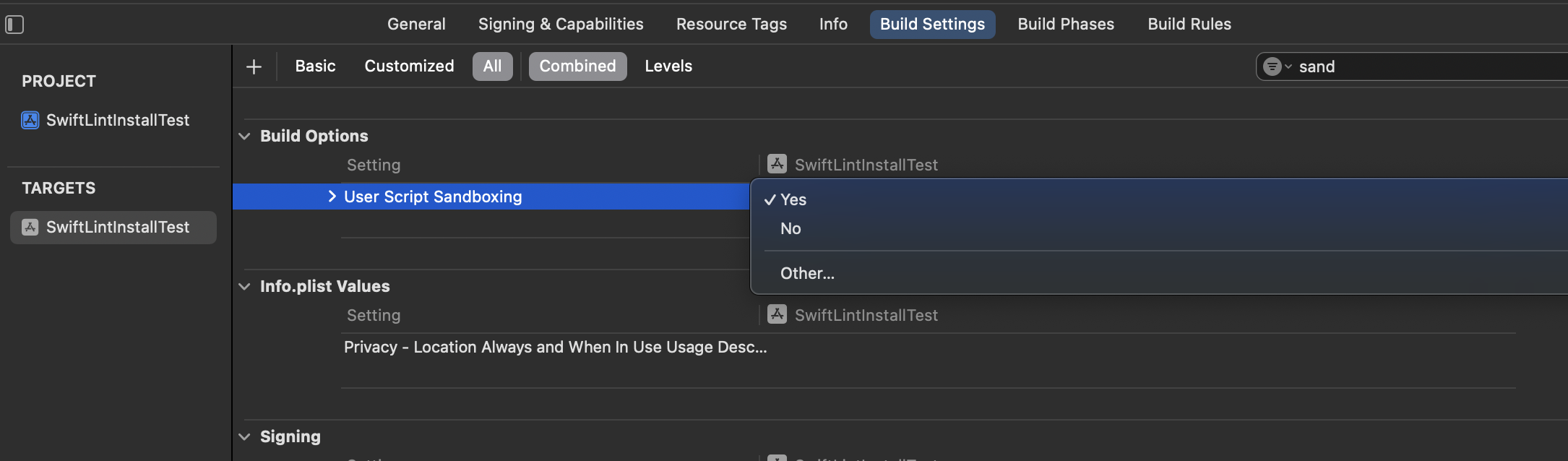 하지만 보안 측면에서 문제가 발생할 수 있고 App Store 심사 과정에서 반려될 가능성이 있어 User Script Sandboxing을 no로 하지 않고 해결할 수 있는 방법을 찾는게 좋다고 하네요..!