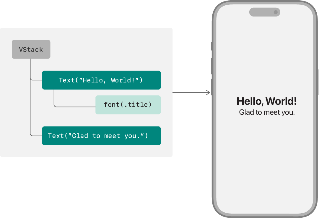 SwiftUI는 사용자 인터페이스 내에서 뷰를 정의하고 구성하기 위한 도구를 제공합니다. SwiftUI가 제공하는 내장 뷰들과 이미 정의된 다른 컴포지트 뷰들을 조합하여 커스텀 뷰를 만들 수 있습니다. 뷰는 수정자(modifier)를 통해 설정하고, 데이터 모델과 연결할 수 있습니다. 이후 이러한 커스텀 뷰를 앱의 뷰 계층 안에 배치할 수 있습니다.