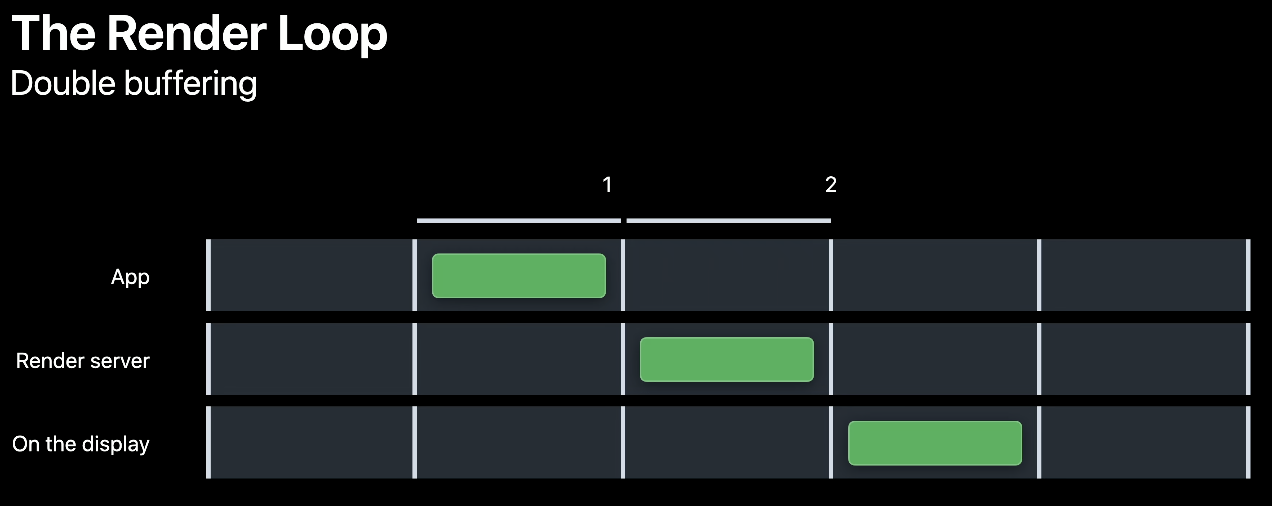 각 스테이지는 순차적으로 진행되기 때문에, VSYNC안에 모든 작업을 마무리하지 못하면 Hitch로 이어지기 때문에 2 프레임 전에 시작, 3 프레임 전에 시작하는 기법을 각각 Double Buffering, Triple Buffering이라고 부릅니다.